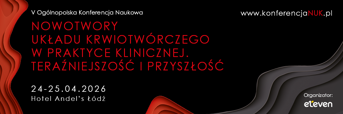 Wyrażam zgodę na przetwarzanie przez Annę Wacławek prowadzącą działalność gospodarczą pod firmą Anna Wacławek Eleven Agency, ul. Gandhi 35/255, 02-776 Warszawa, NIP: 6641812516; REGON: 142712928, działającą jako Administrator danych osobowych, podanych przeze mnie danych osobowych oraz mojego wizerunku w celu kontaktu na potrzeby rejestracji, przekazywania informacji lub dokumentów (np. certyfikatów) związanych z zapewnieniem uczestnictwa w konferencji „V Ogólnopolska Konferencja Naukowa „Nowotwory układu krwiotwórczego w praktyce klinicznej – teraźniejszość i przyszłość”, w tym w szczególności weryfikacji oraz potwierdzenia mojego uczestnictwa w konferencji.
